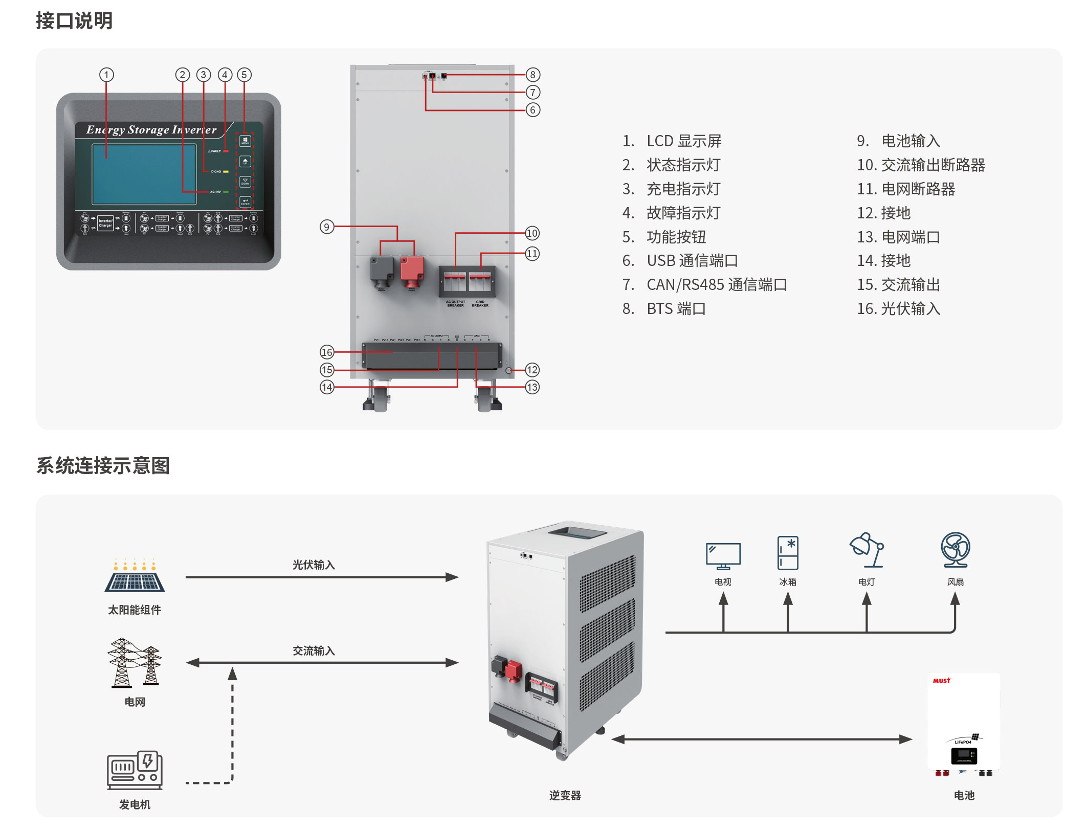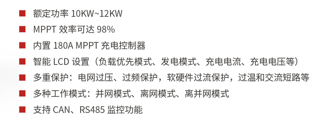 工作方式: 光伏工頻離并網(wǎng)儲(chǔ)能逆變器