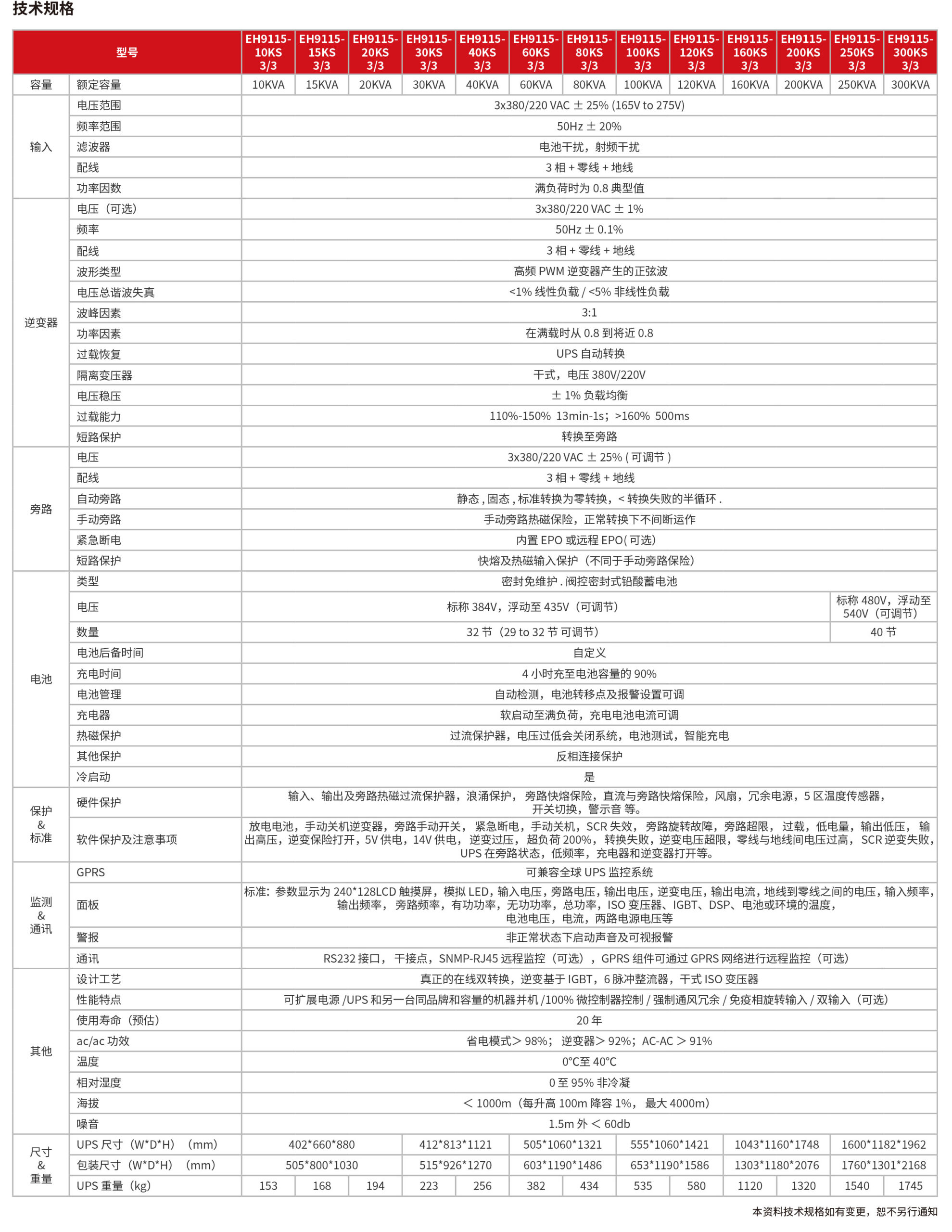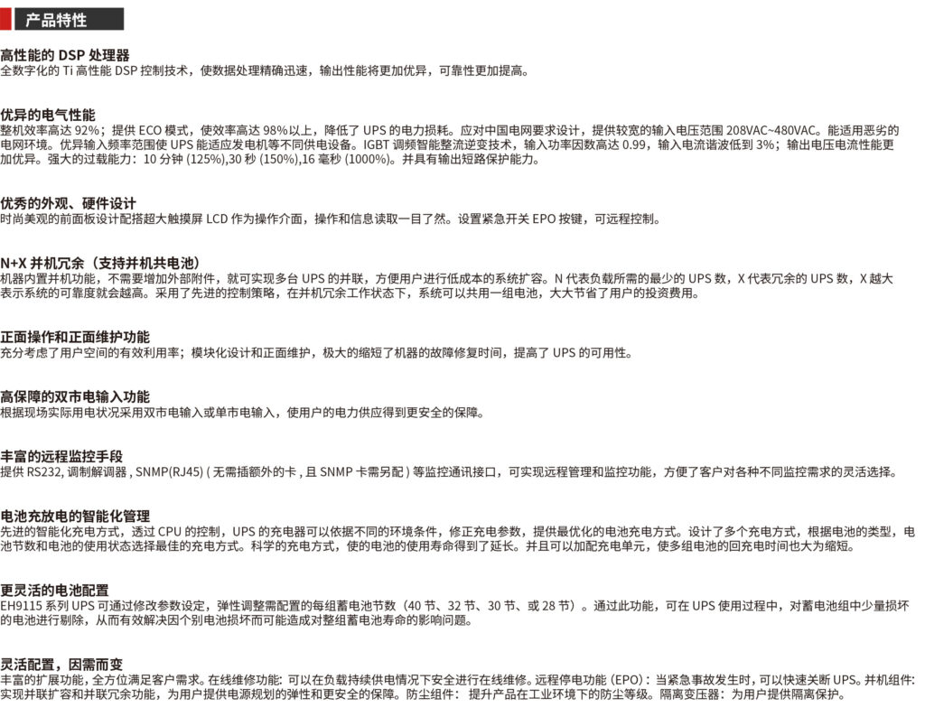 EH9115系列工頻在線式三進(jìn)三出UPS 10KVA-300KVA