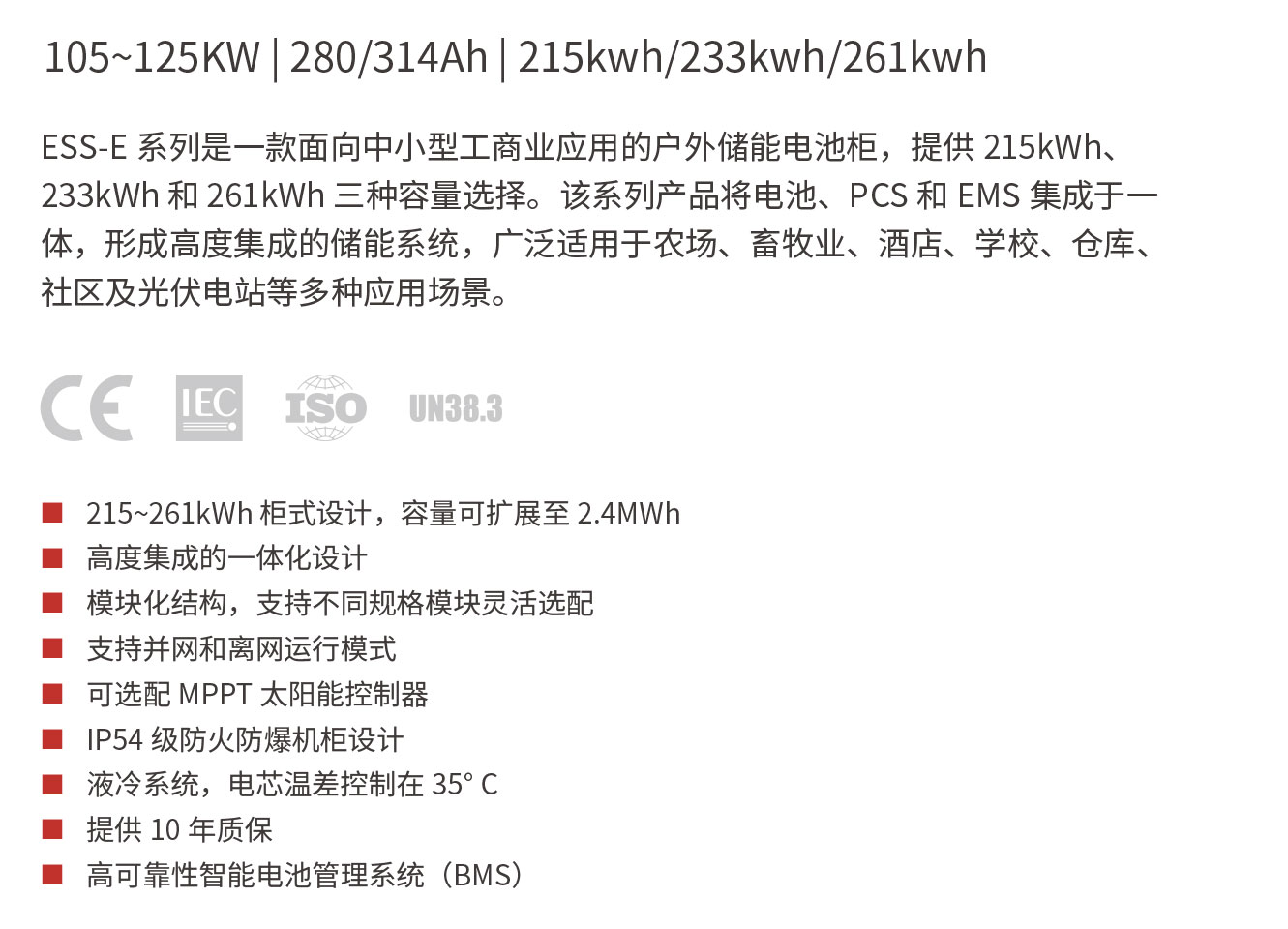 工商業(yè)混合型儲能系統(tǒng)ESG-E 系統(tǒng)105~125KW