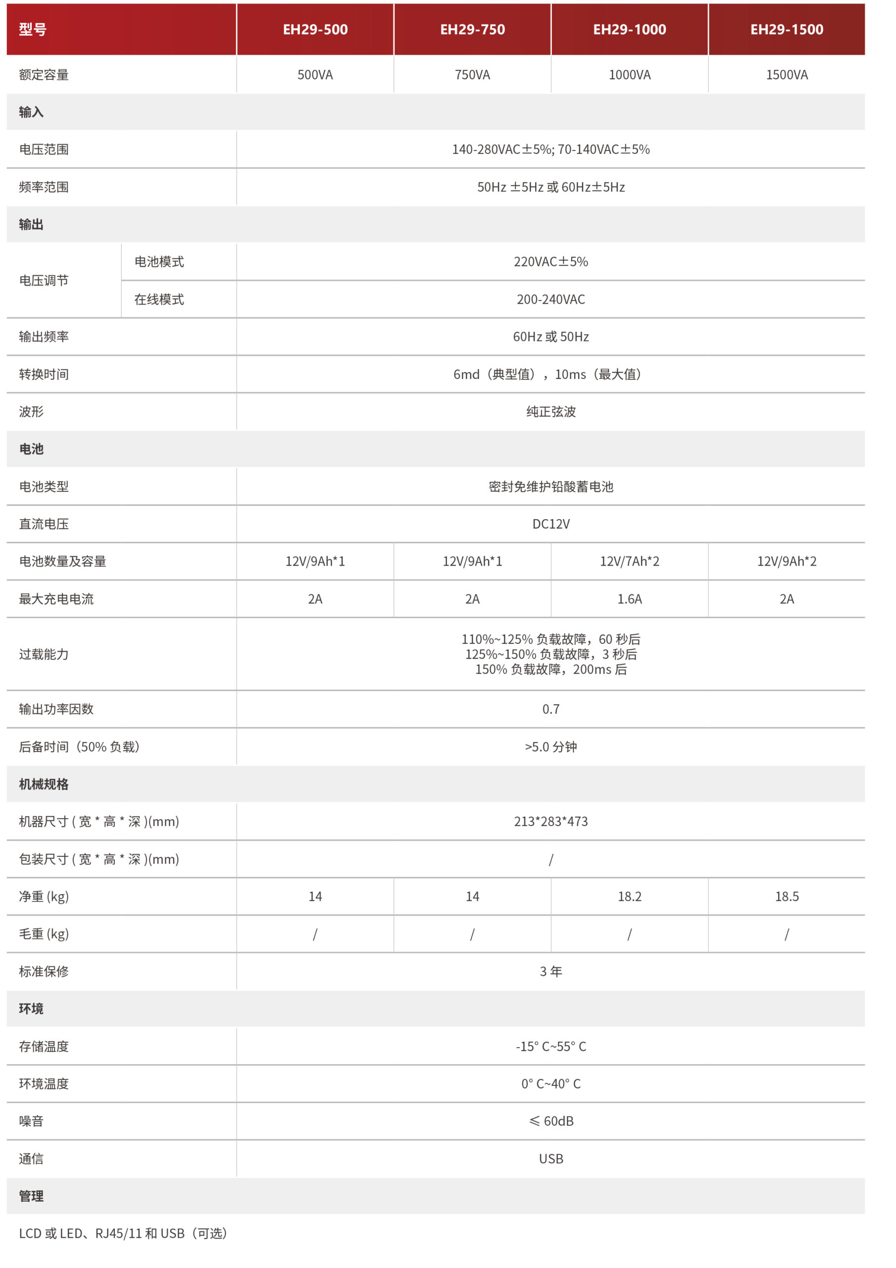 EH2900 是一款性能卓越的小型線交互式不間斷電源(UPS),可為臺式電腦、工作站、網(wǎng)絡設備以及需要主動式功率因數(shù)校正(PFC)電源兼容的家庭娛樂系統(tǒng)提供電池備份、電源保護(通過正弦波輸出)和浪涌保護。