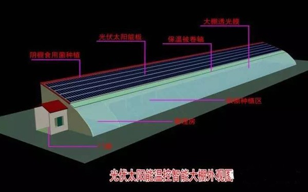 多功能棚屬于智能光伏農(nóng)業(yè)。棚前做冬暖大棚種植植物,棚后做工廠化食用菌養(yǎng)殖,棚頂發(fā)電。一棚三用,能量循環(huán)、節(jié)水、節(jié)地、節(jié)能。