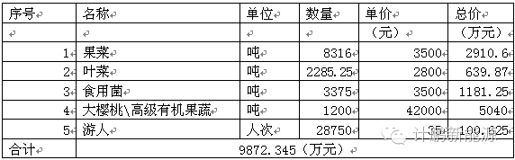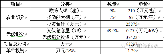 聯(lián)棟溫室大棚棚體單位造價約為350元/m2,多功能大棚平均單位造價約為310元/m2,項目整體造價估算見下表所示: