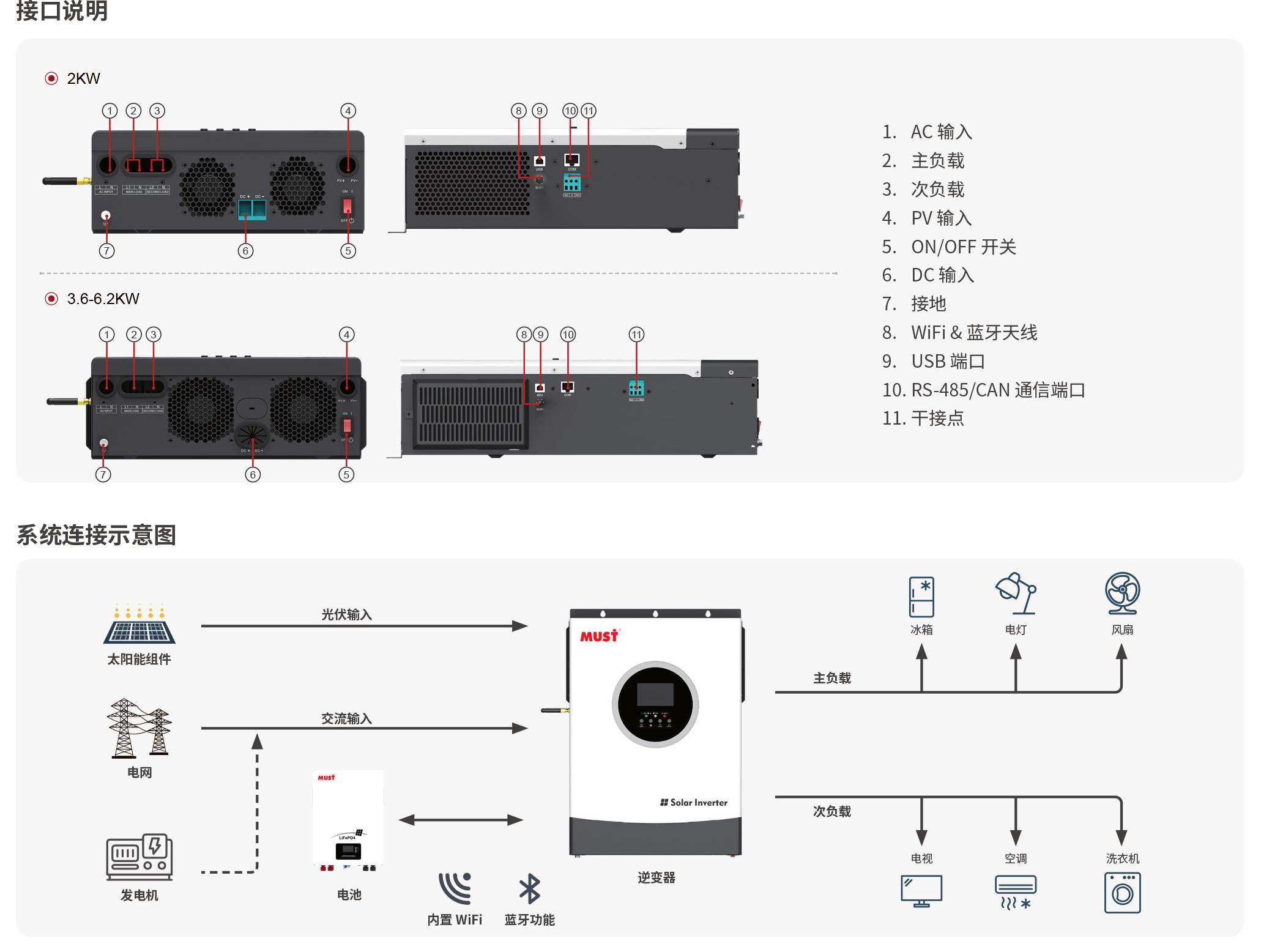 - 純正弦波輸出,可滿(mǎn)足各類(lèi)型的負(fù)載使